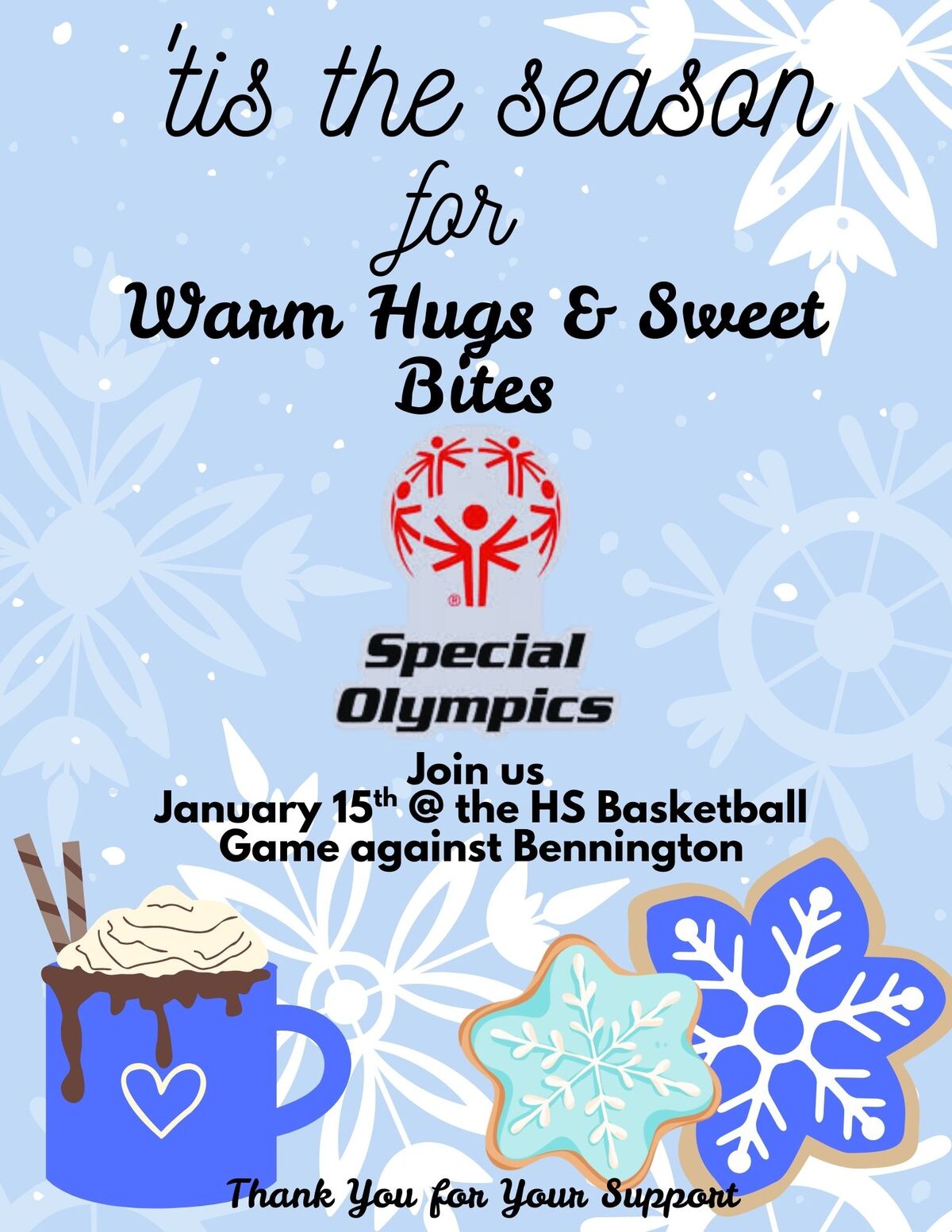 Come out and enjoy a sweet treat and some homemade Hot Cocoa while watching the High School Lady Cougars and Cougars face off against Bennington.